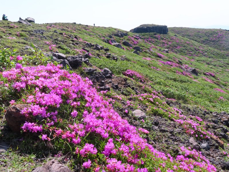 いうので出かけてきた。ミヤマキリシマは見頃て多く登山者で賑わっていました。