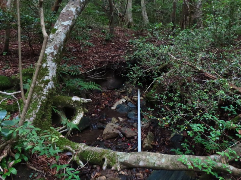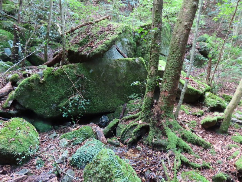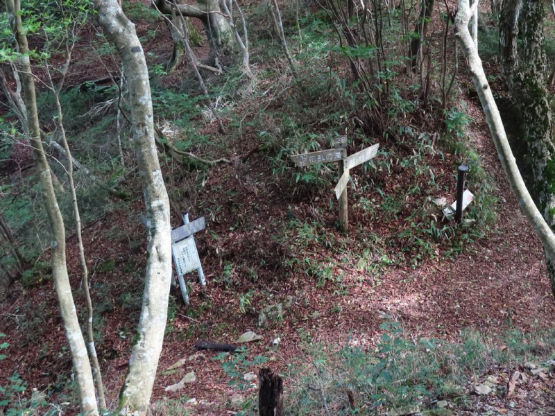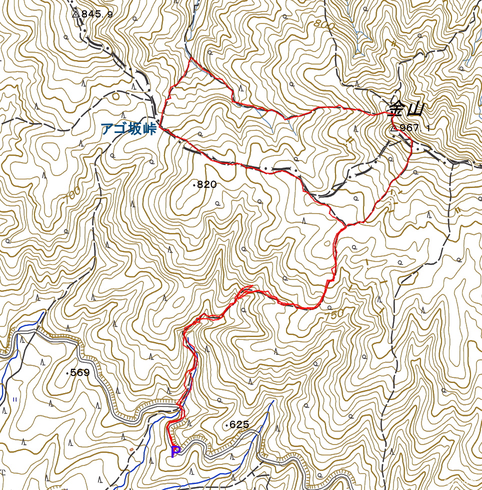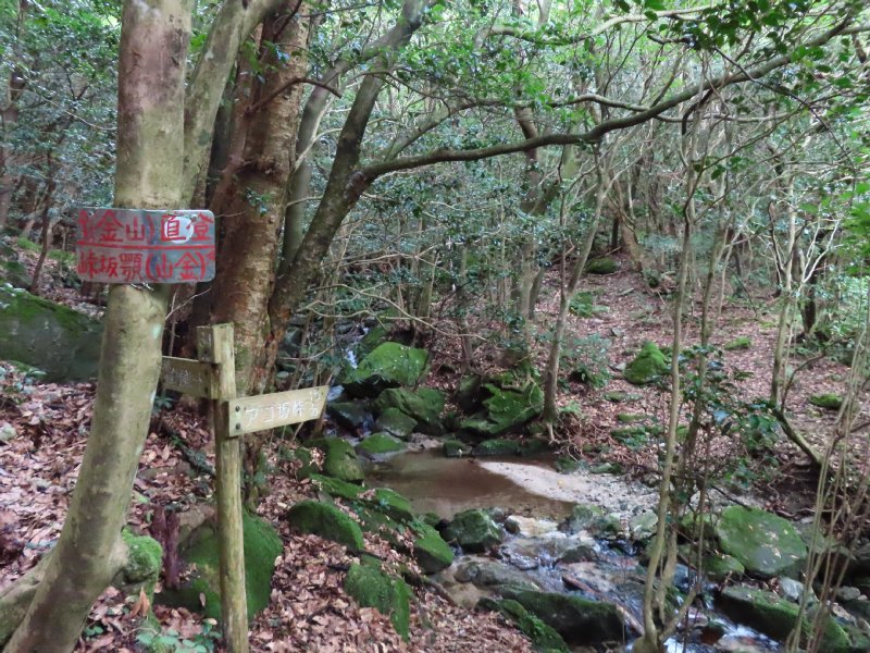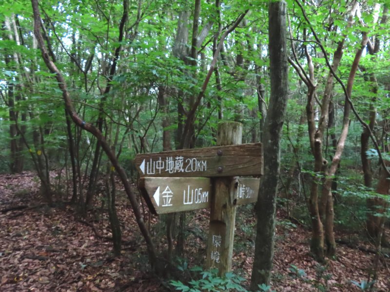 駐車地点(7:53)−(8:07)林道登山口−(8:22)渡渉−(9:10)縦走路−(9:15)金山(9:25)−(9:27)分岐−