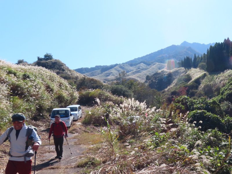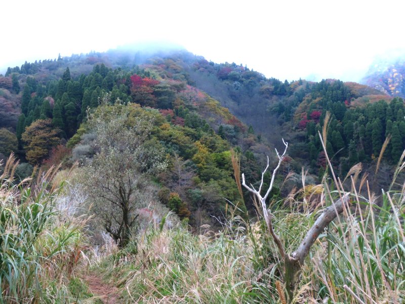 右 ススキの中を登る。