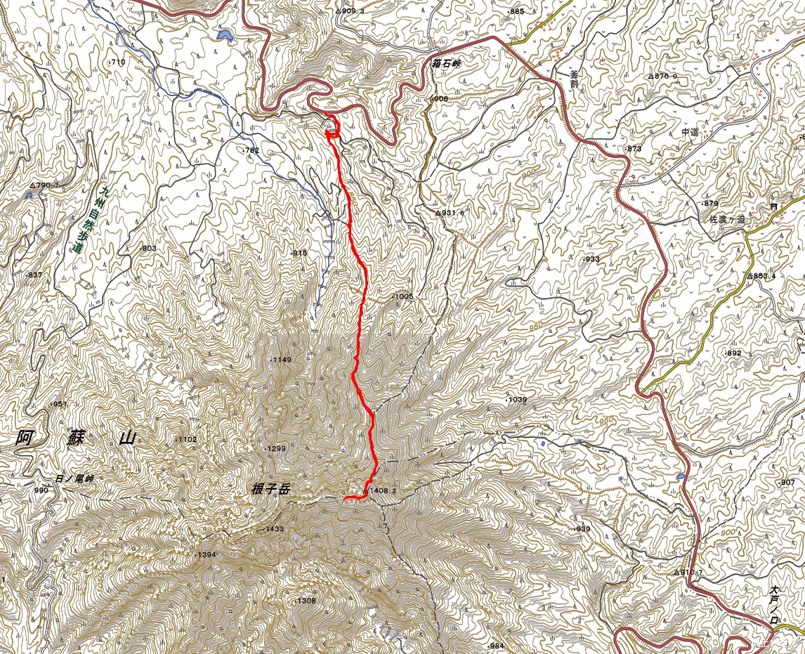 道の駅「阿蘇」=(7:10)駐車場− 釣井尾根登山口(7:15)−(8:15)展望地−(8:40)箱石尾根分岐−(9:12)根子岳東峰