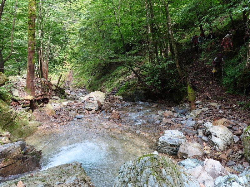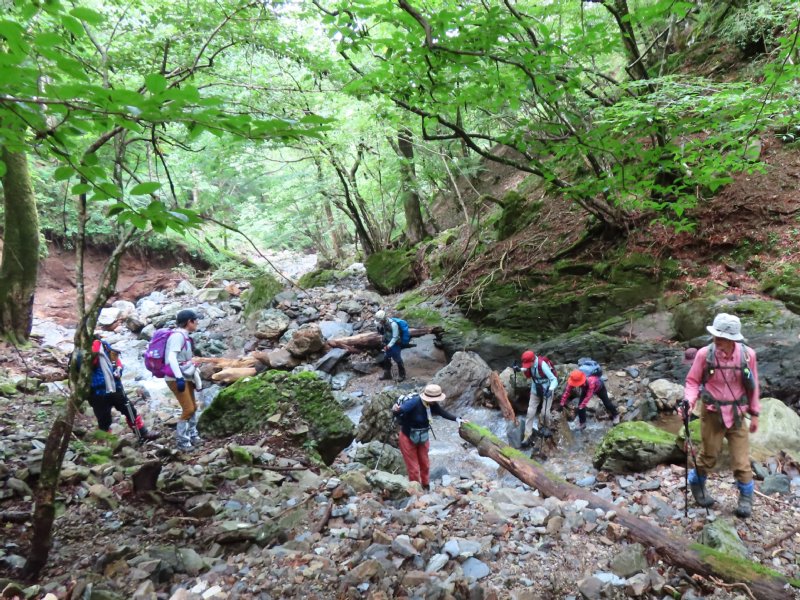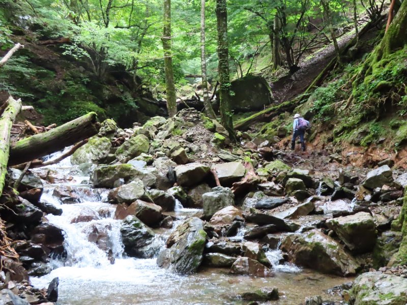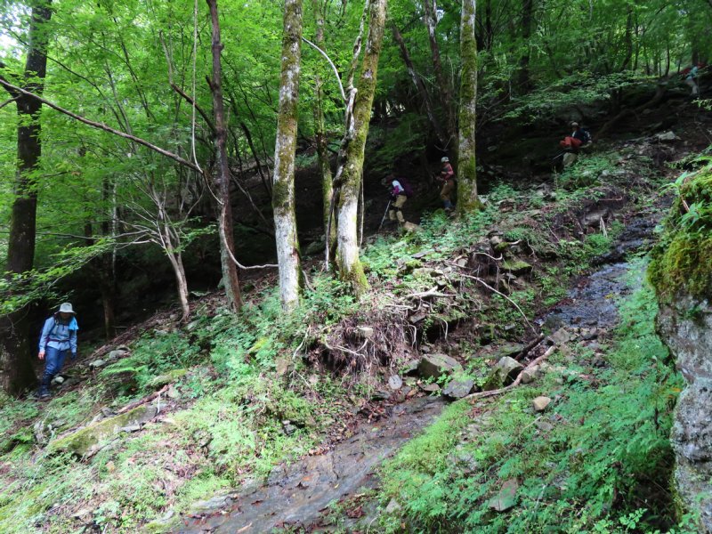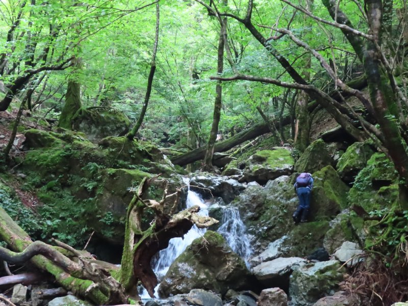 水量も多く、小滝が連続する谷は素晴らしい。 |