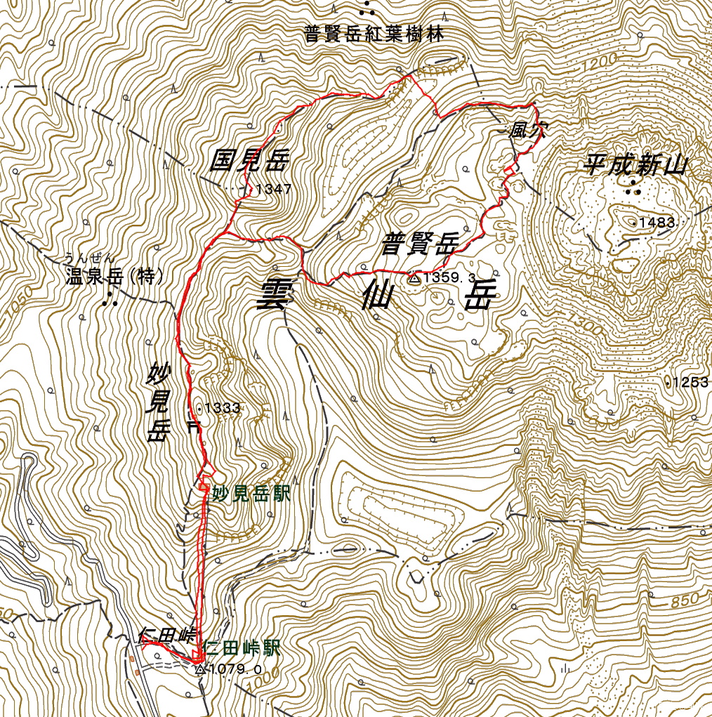 (10:46)北の風穴−(10:55)展望所−(11:15)立岩の峰−(11:40)普賢岳(12:15)−(12:34)紅葉茶屋