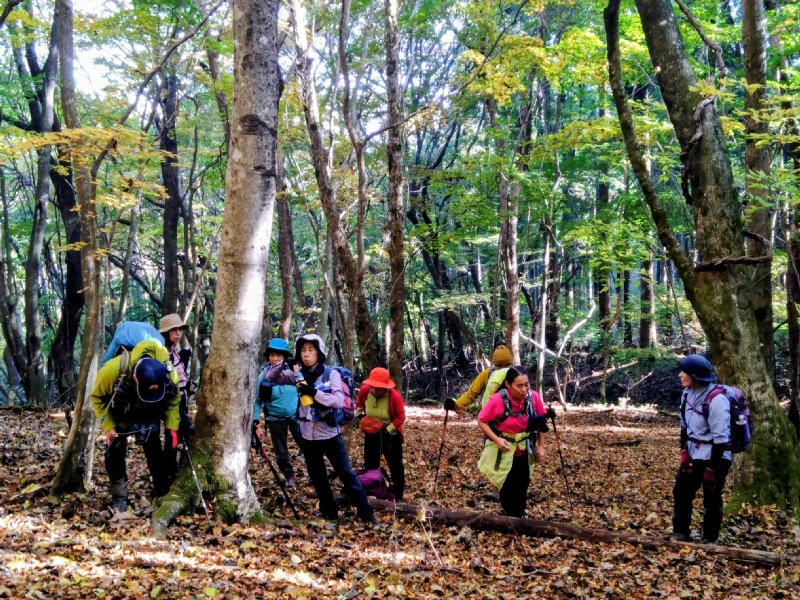 八山会恒例の11月の涌蓋山誕生会登山、今回は地蔵原から山麓の紅葉を見ながら涌蓋山に登り