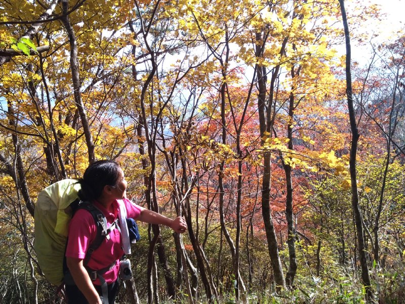 八丁原登山口(8:00)=地蔵原登山口(8:25)−(9:32)林道−(10:50)涌蓋山(12:00)−(12:14)女岳−