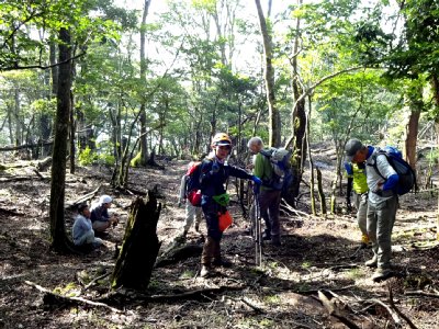石楠越から森の広場、山犬切峠に、トリカブトを見に