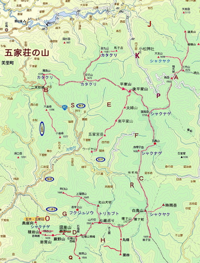 霧立越・向霧立越・那須往還 (アルファベットは登山口を示す)