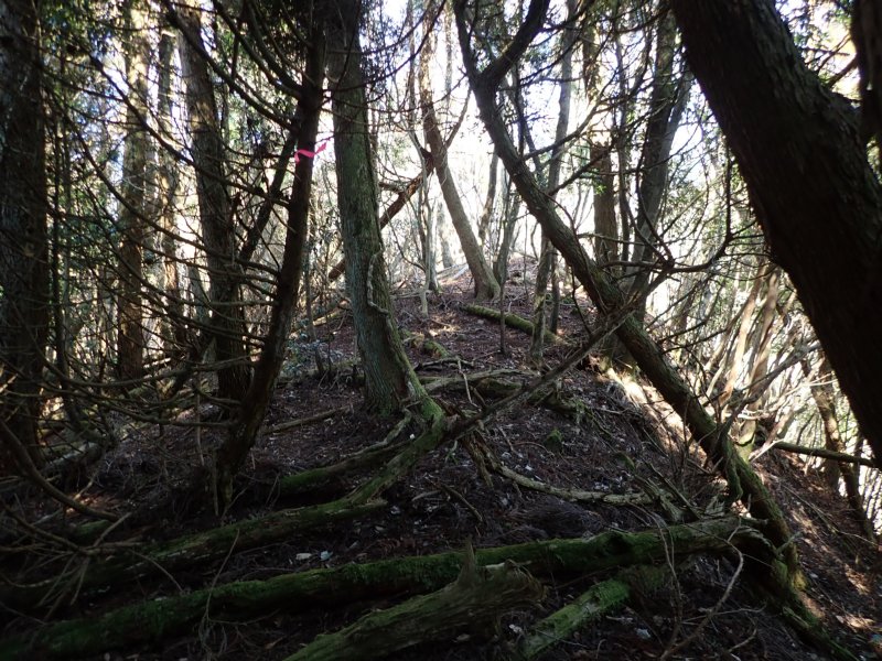 右 倒木の多い尾根を