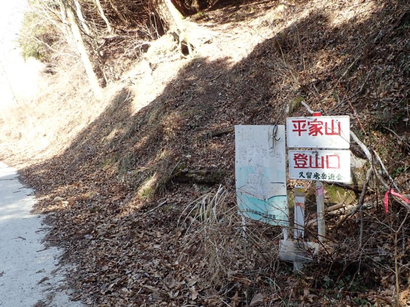 尺間神社鳥居(8:57)−(9:05)尺間神社−(9:35)林道−(9:58)平家山−(10:25)登山口−(10:50)鳥居 |