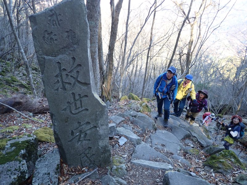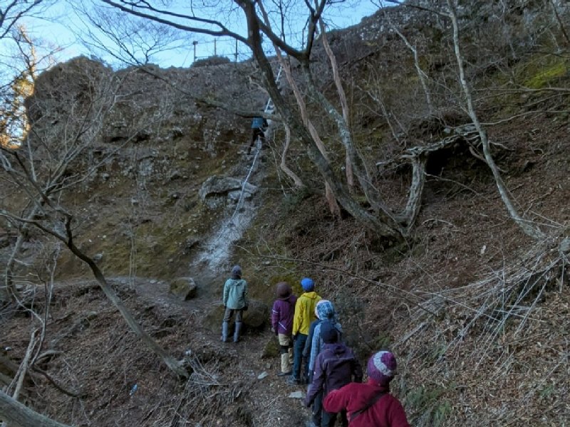 八山会山行、氷瀑を期待していたのだが暖冬で滝も凍らないため、福太郎下駐車場に車をデポし豊前坊から