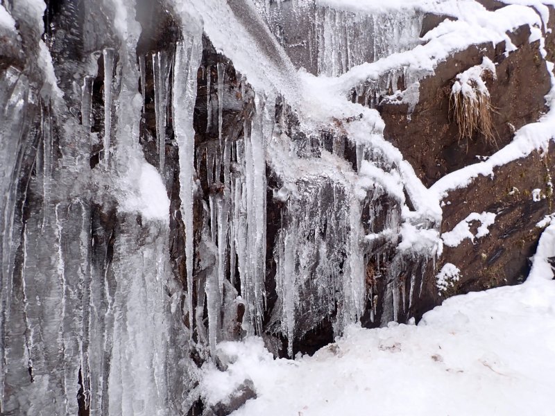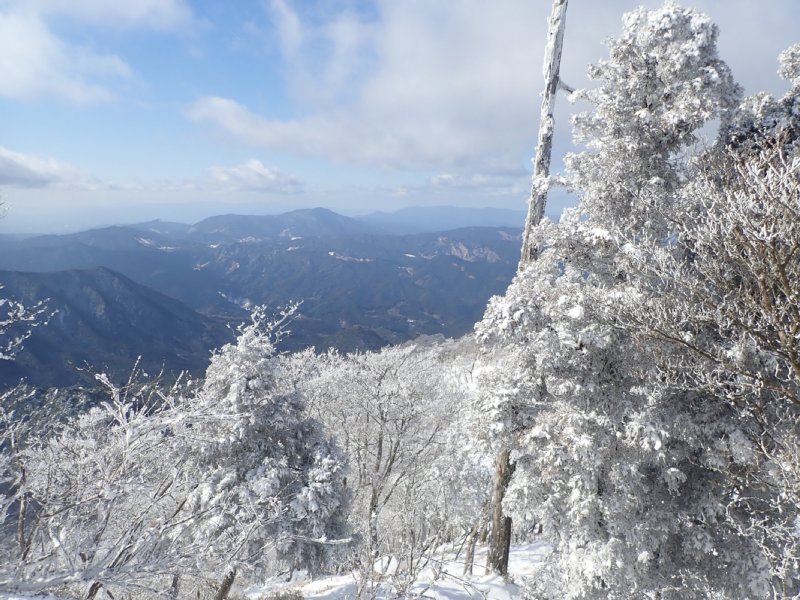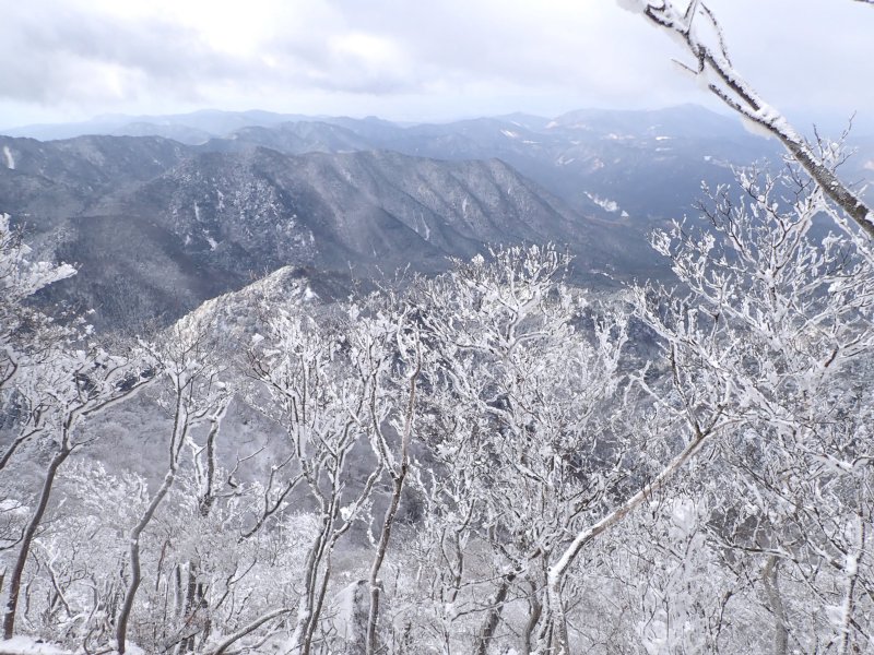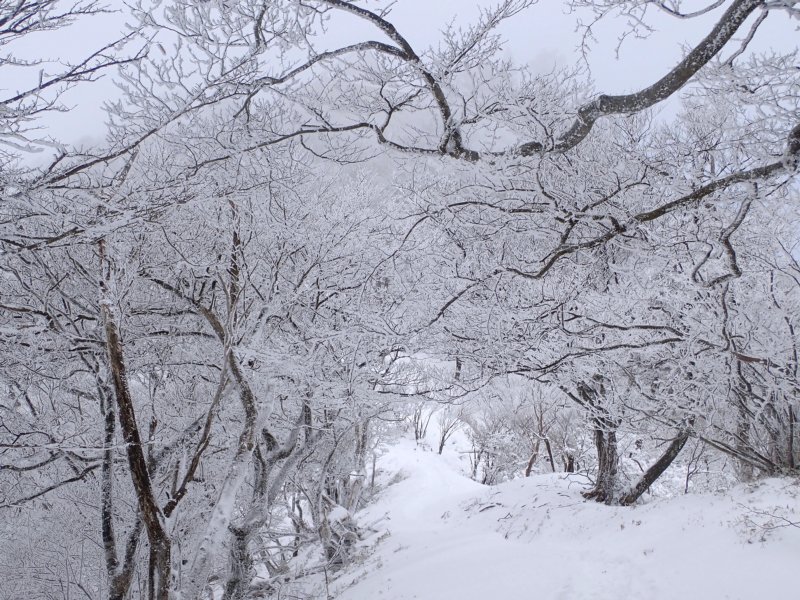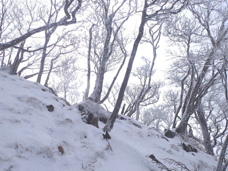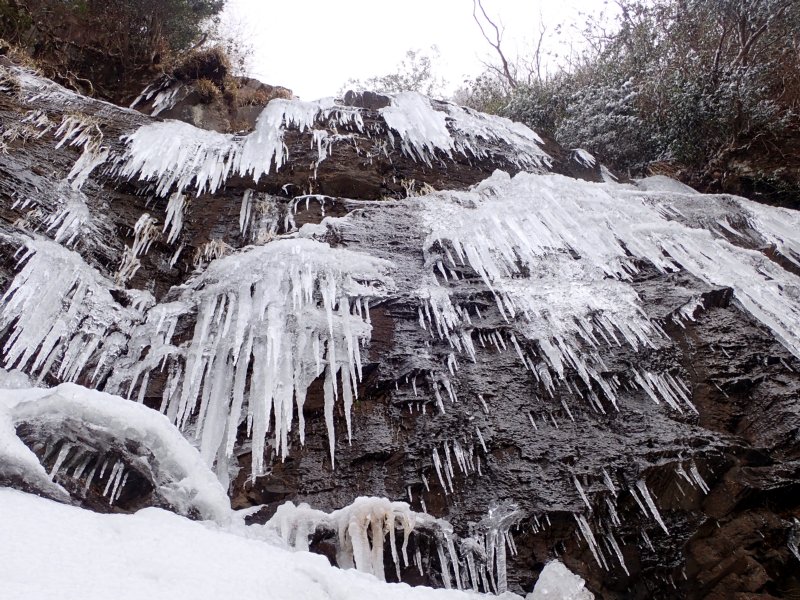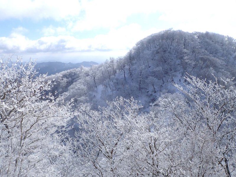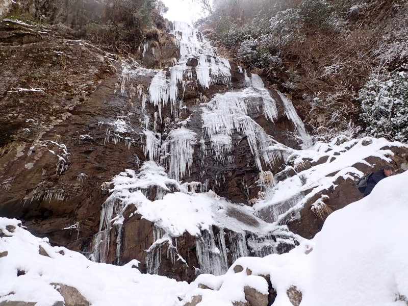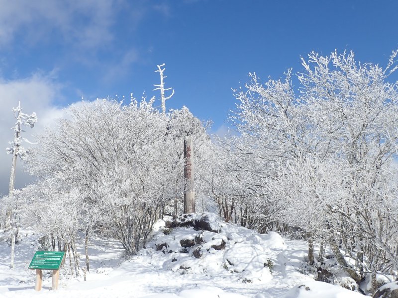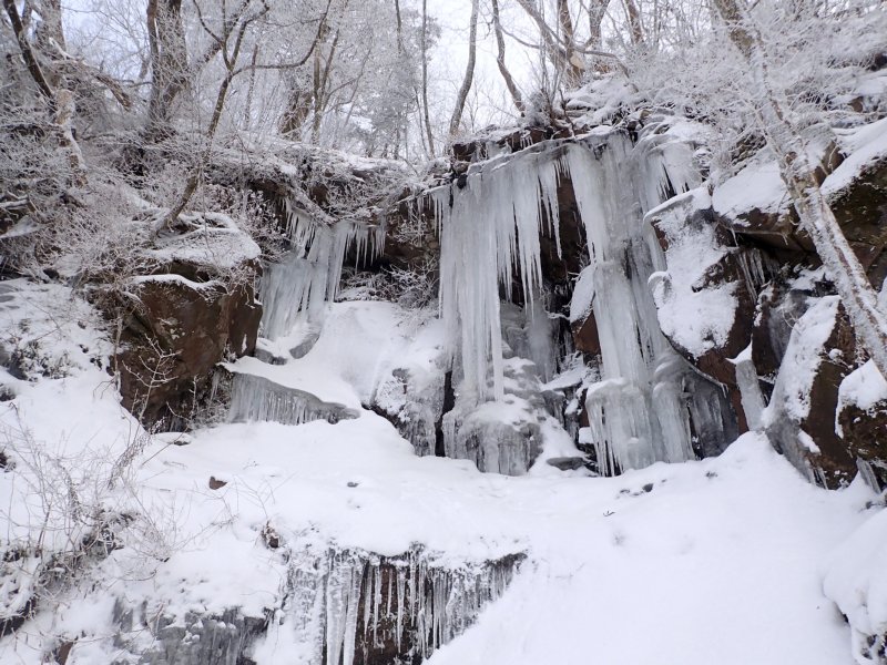 予想以上の雪の多さでしたが氷瀑は今一つでした。南岳の霧氷も見事で中岳は多くの登山者で賑わっていました。