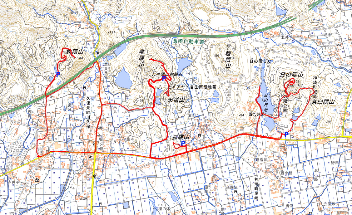 茶臼隈山・日の隈山・早稲隈山・狐隈山・帯隈山・天道山・鈴隈山