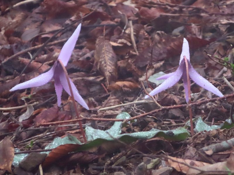 まだ蕾でカタクリは咲いていたものの曇り空で開いていませんでした。 |