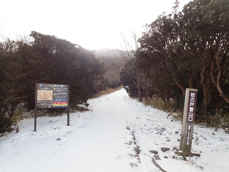 左 登山道には雪、