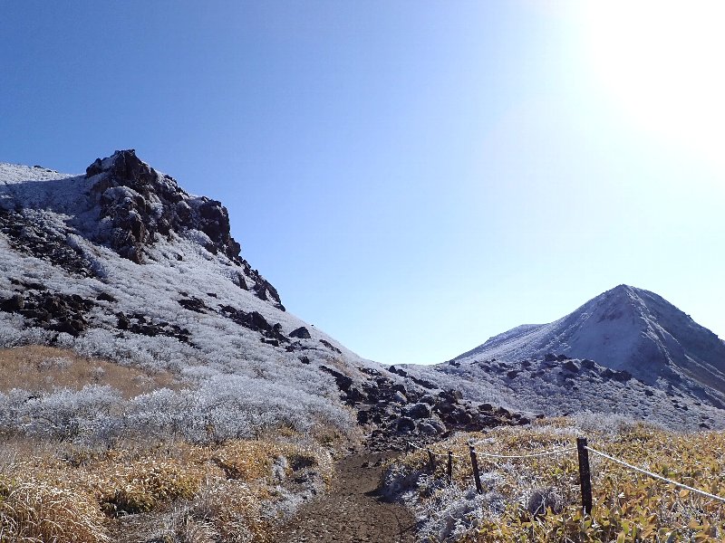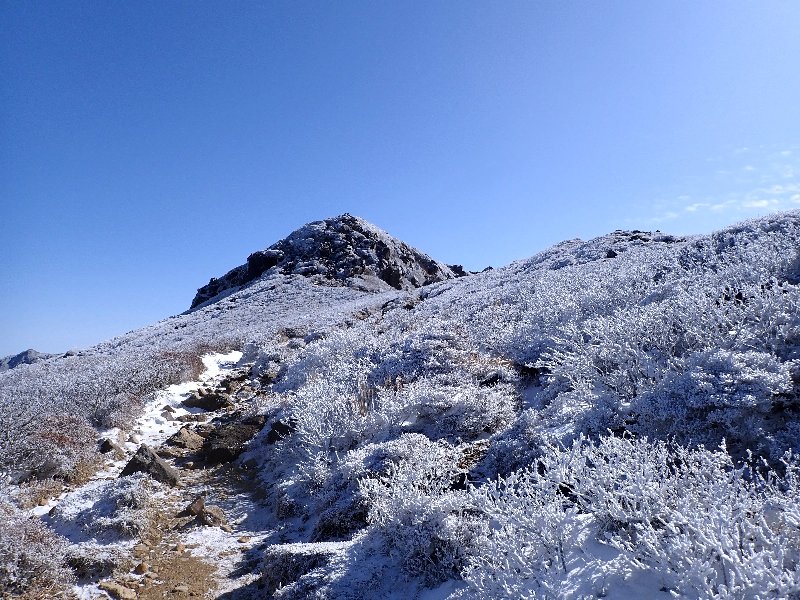 右 霧氷が見えてきた。