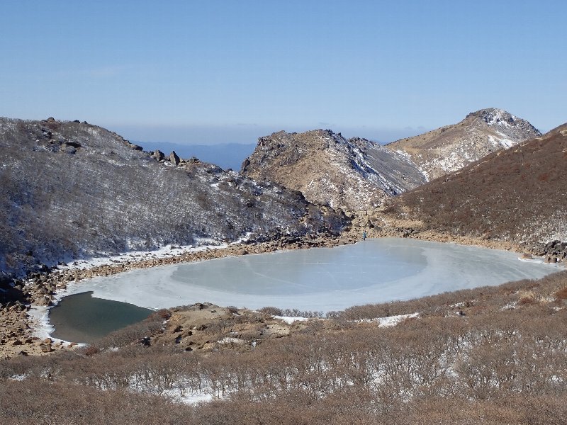 久住中岳 御池には一部さざ波が |