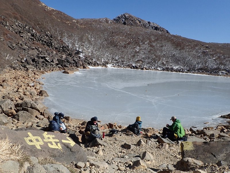 池の小屋で昼食休憩 |