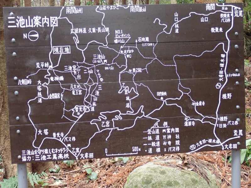 (10:35)二の山−(10:48)三池山−(10:52)茶臼塚山−(11:06)鳴川山−東屋昼食(11:50)−(12:46)定林寺駐車場=三池公園 |
