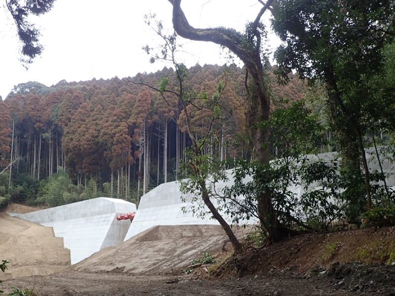 右 工事中の砂防ダム