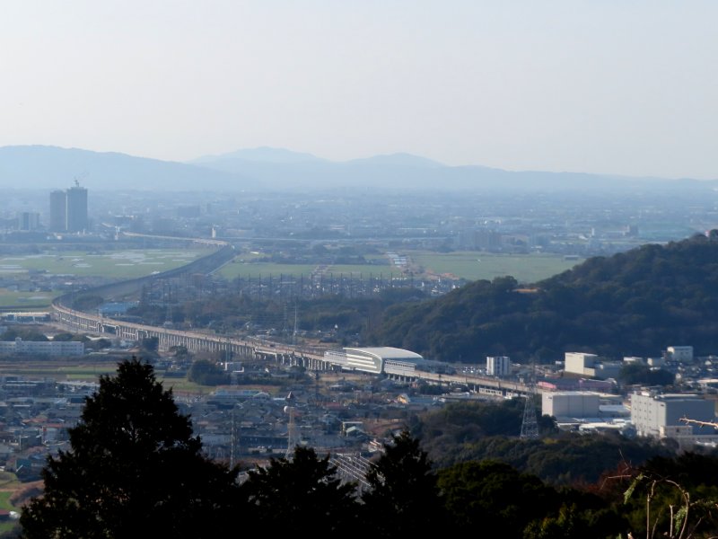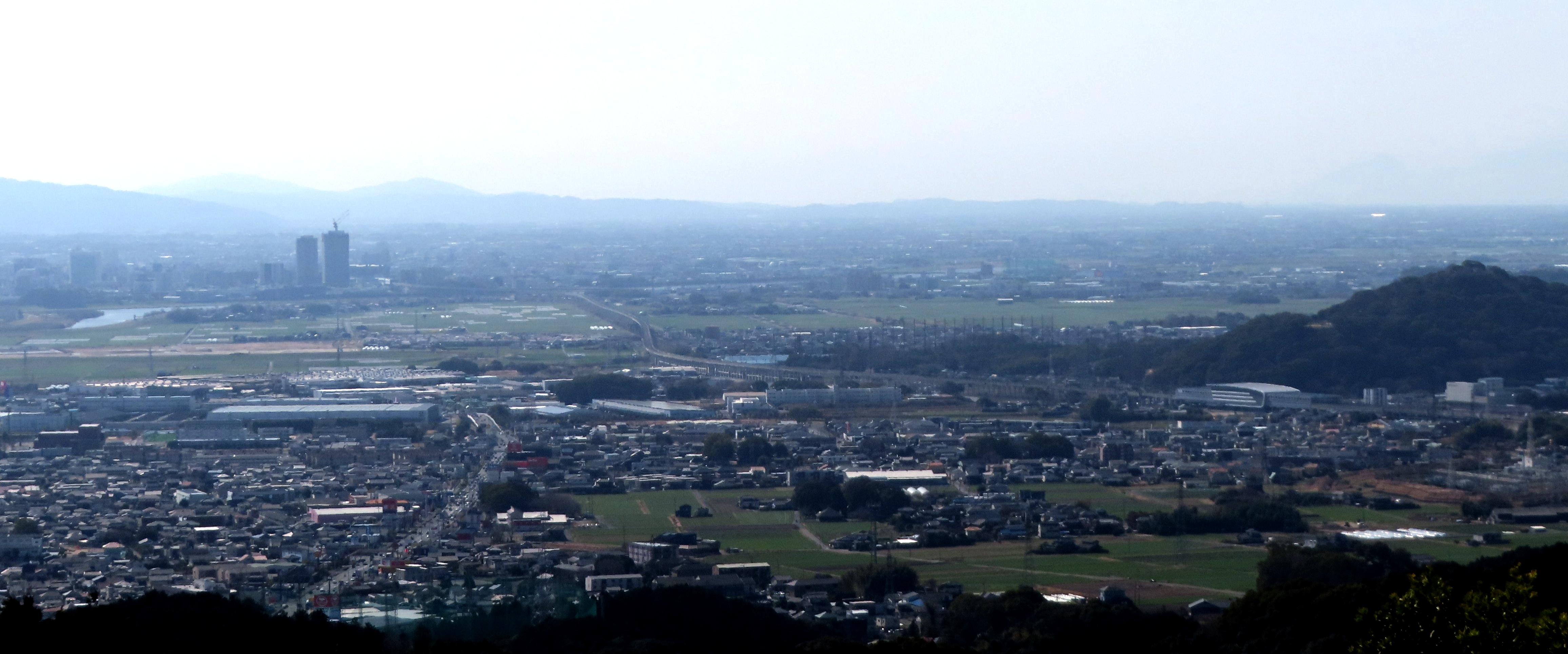 杓子ヶ峰から見た筑後川、ツインタワー、新幹線、新鳥栖駅、ダガハイマット