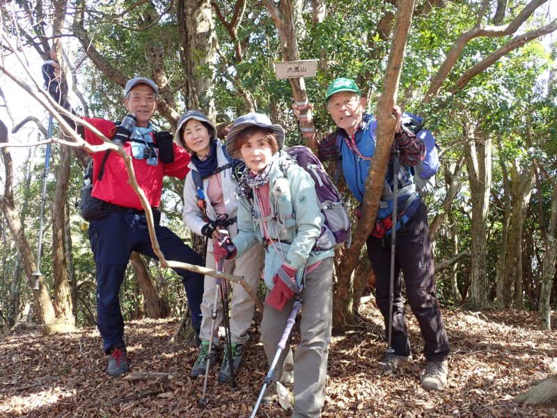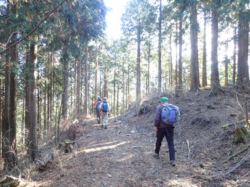 野倉駐車地点(7:50)−(8:25)銀杏畑終−(9:00)大祖山−作業道−(9:45)舗装林道(10:10)−(10:35)尾根分岐−