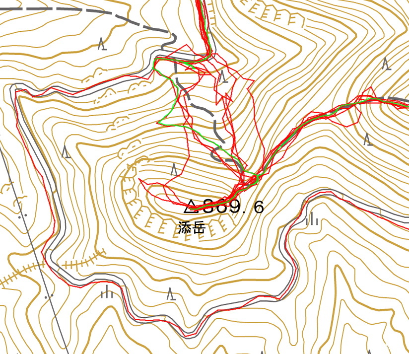 (10:51)添岳(11:08)−(12:11)横岳(12:40)−(13:30)大黒山−(14:28)林道−(15:03)ゲート−(14:30)駐車地点