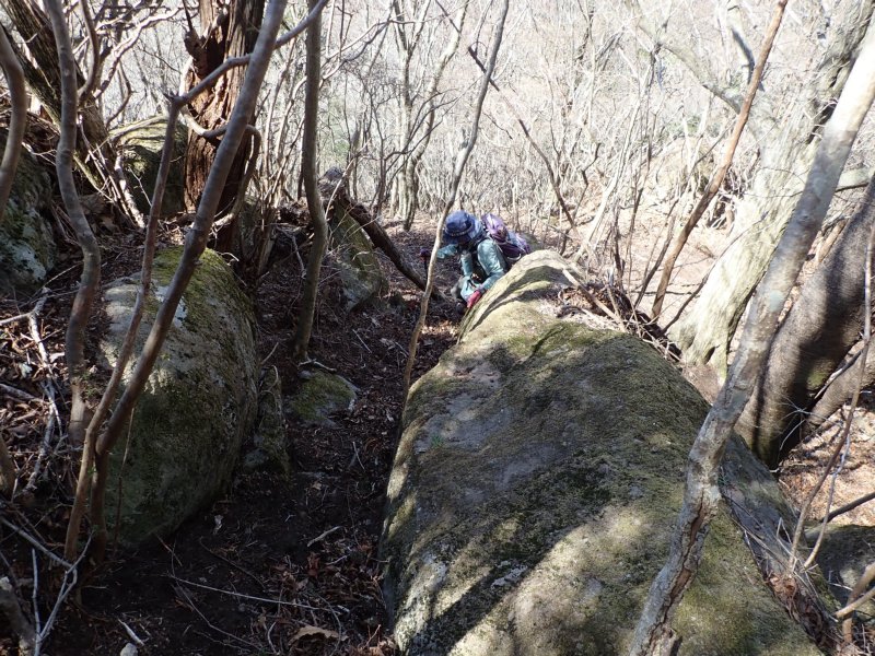 左 岩の間を登る