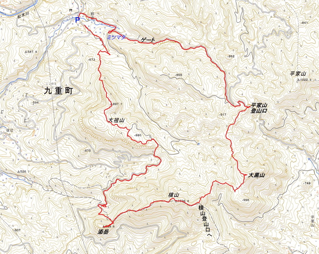 大祖山 897.5m 添岳 869.6m 横山 136.6 大黒山