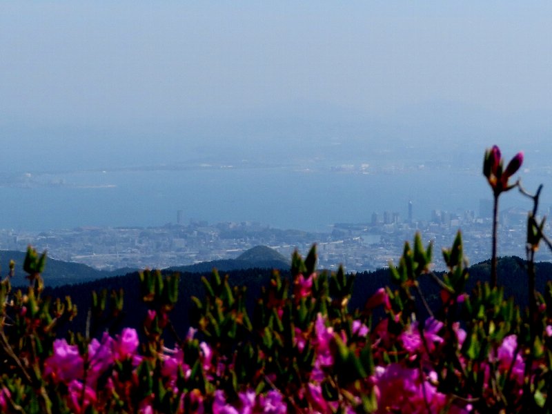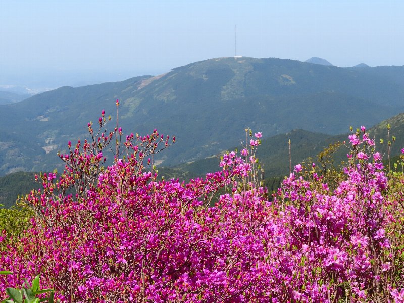 | 井原山直下のミツバツツジ、脊振山を望む。 |