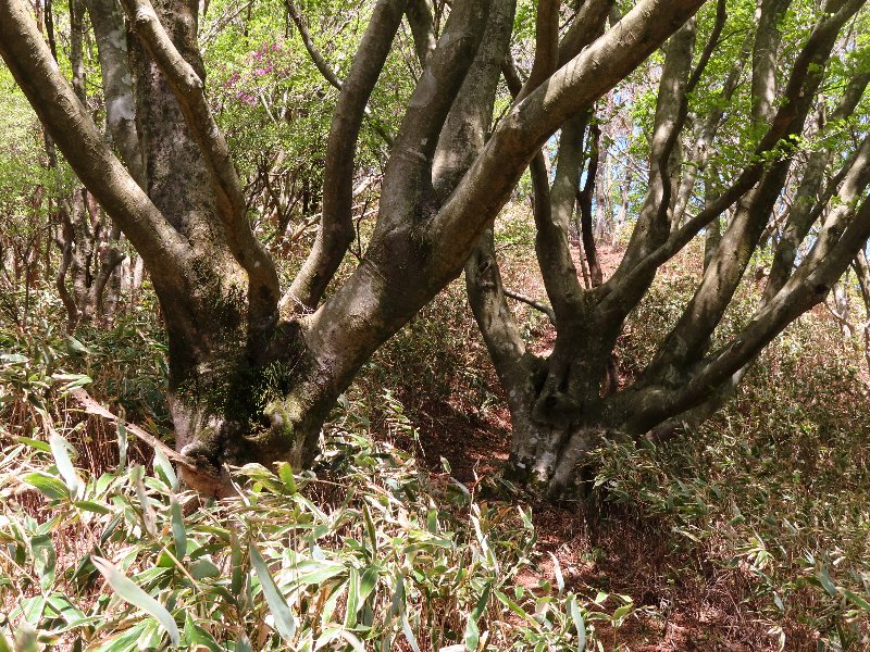 井原山登山口と雷山登山口の中間に車をとめ、井原山から雷山へ周回した。ミツバツツジは見頃で