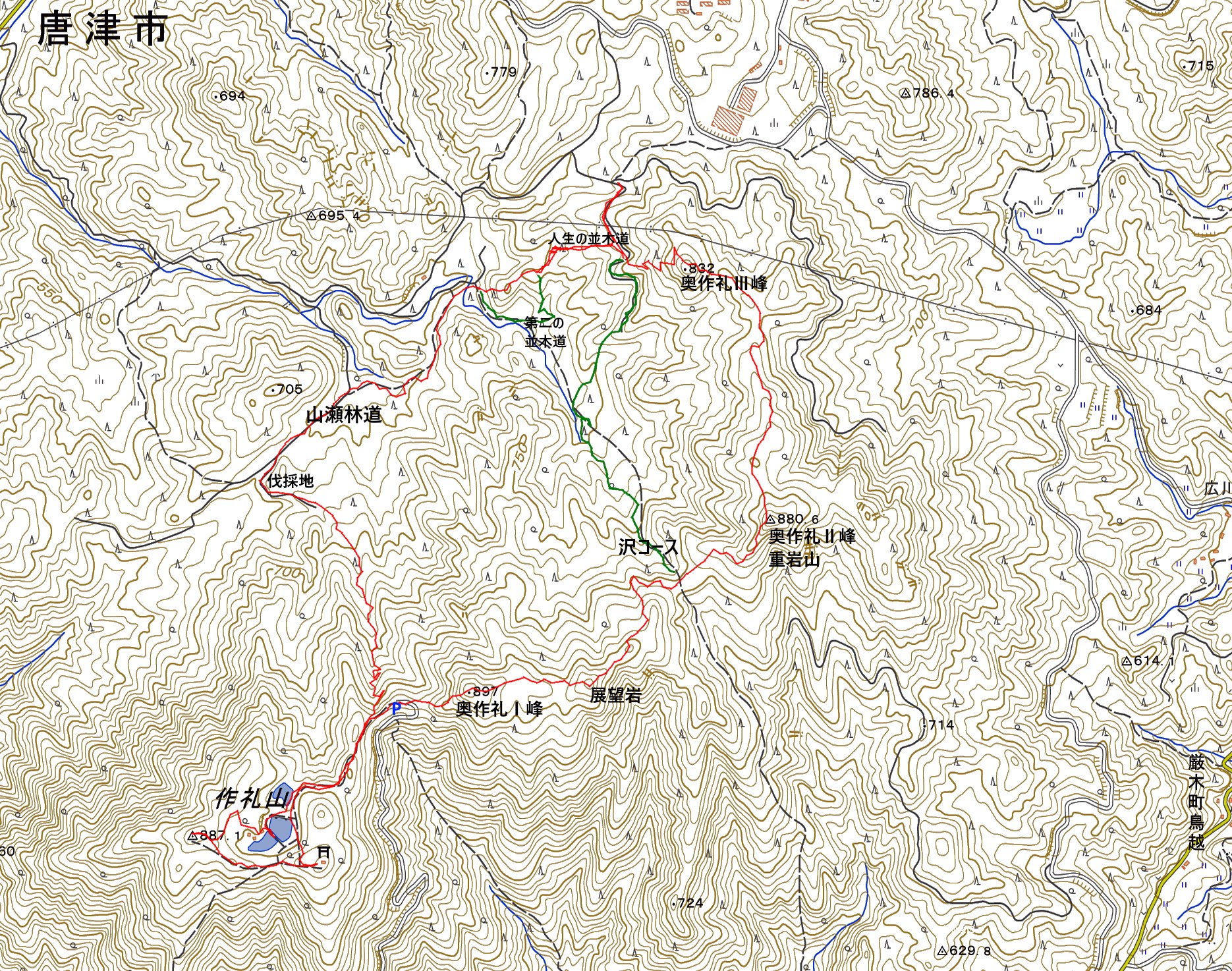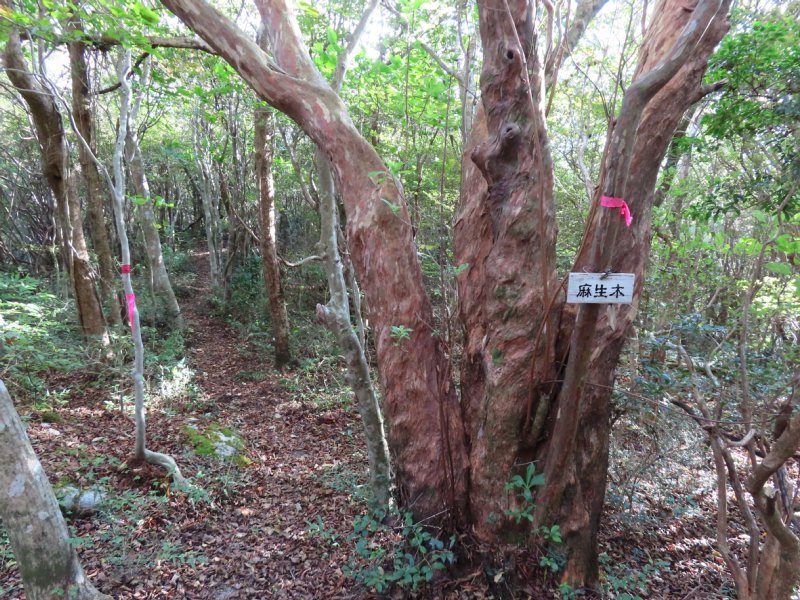 −(9:42)人生の並木道−(10:00)渡渉−(10:14)林道−終点・休憩(10:25)−(10:57)尾根−(11:30)作礼山三角点