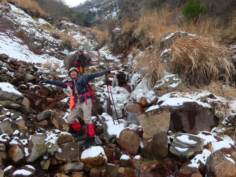 右 谷も一部氷る。