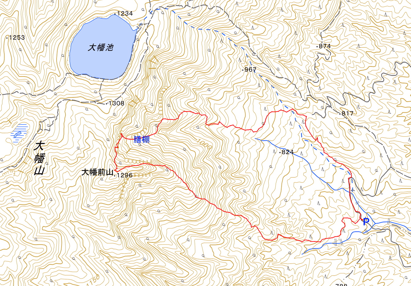 大幡沢から膳棚、大幡前山 1296m